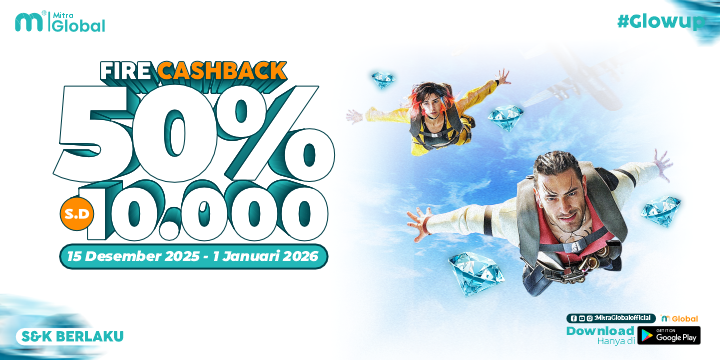 Buat kamu para survivor Free Fire, sekarang waktunya top up lebih untung! Nikmati Cashback hingga 50% dengan maksimal Rp10.000 khusus untuk setiap transaksi produk Game Free Fire. Top up bukan cuma soal Diamond masuk, tapi juga soal harga terbaik, proses cepat, dan bonus nyata.