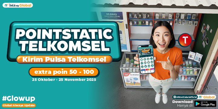 Jangan sampai ketinggalan kesempatan dapetin extra poin dari produk Telkomsel favoritmu. Mulai transaksi sekarang di Mitra Global, dan rasain sendiri serunya dapet bonus poin setiap transaksi.