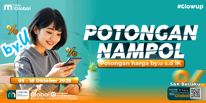 Sekarang waktunya kamu nikmatin program Potongan Nampol dari Mitra Global. Setiap transaksi paket data By.U bakal dapetin diskon potongan harga hingga Rp1.000. Bayangin, kalau sehari TemanGo transaksi banyak, potongan kecil ini bakal jadi hemat besar di akhir periode. Itu artinya, peluang jualan makin terbuka lebar dan margin makin mantap. Jadi jangan tunggu lama ” Potongan Nampol ” ini hadir buat TemanGo yang mau serius ngejar cuan, tapi tetap hemat modal.